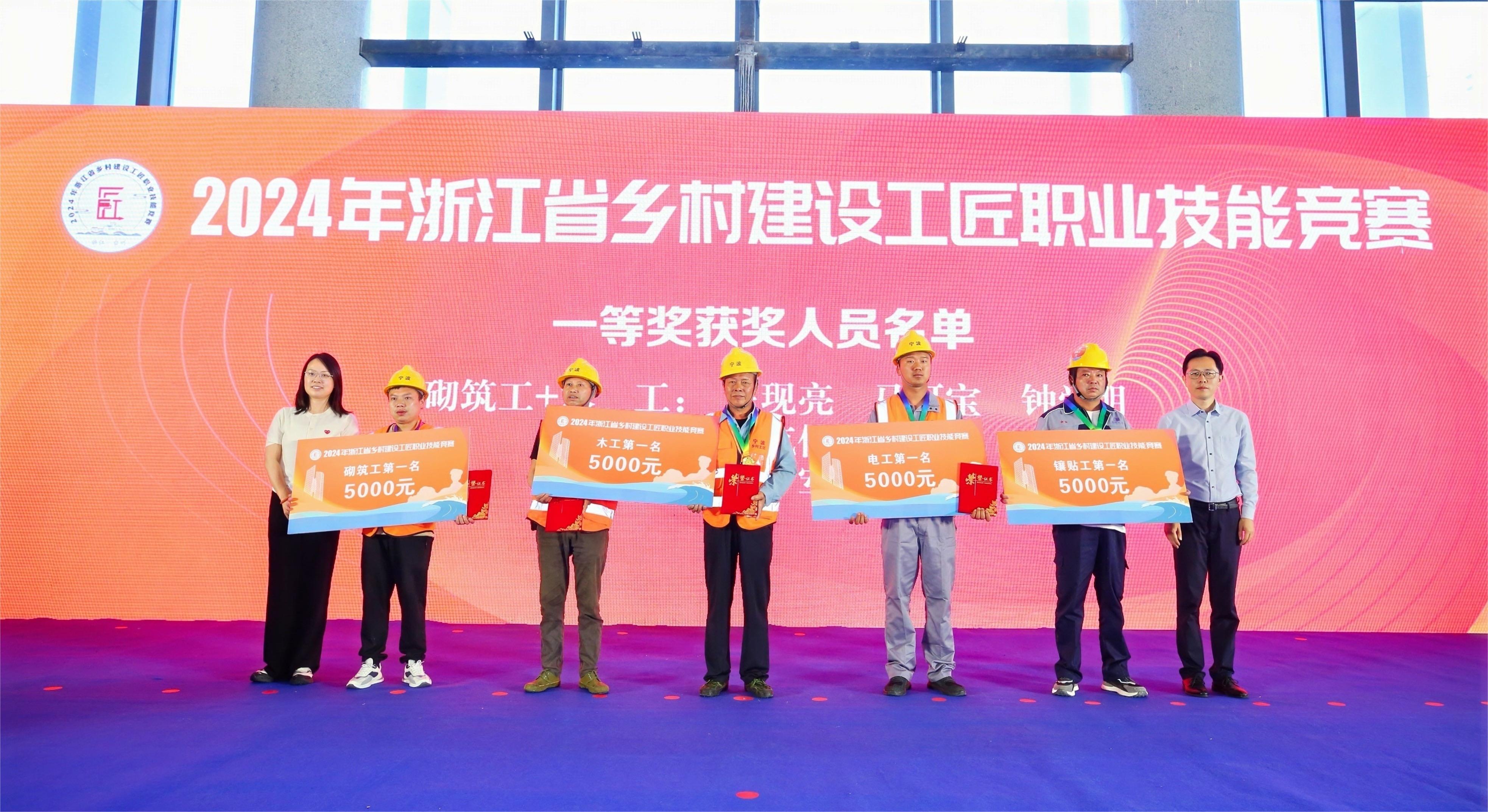 5月29日,2024年浙江省鄉(xiāng)村建設(shè)工匠職業(yè)技能競賽在臺州溫嶺市舉行,來自全省11個市代表隊共計155名鄉(xiāng)村建設(shè)工匠參與了比賽。浙江二建職工王克偉以總分第一獲電工賽項(xiàng)一等獎,經(jīng)省總工會核準(zhǔn)后將授予“浙江金藍(lán)領(lǐng)”稱號;砌筑工賽項(xiàng)中,唐世界獲三等獎。