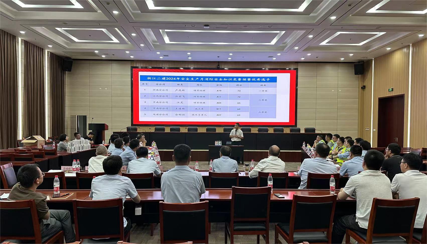 7月1日下午,浙江省二建建設(shè)集團(tuán)舉行2024年度“安全生產(chǎn)月”消防安全知識競賽,檢驗(yàn)安全員崗位練兵成效,夯實(shí)消防救援技能基礎(chǔ),營造“人人講安全 個(gè)個(gè)會應(yīng)急”良好氛圍。