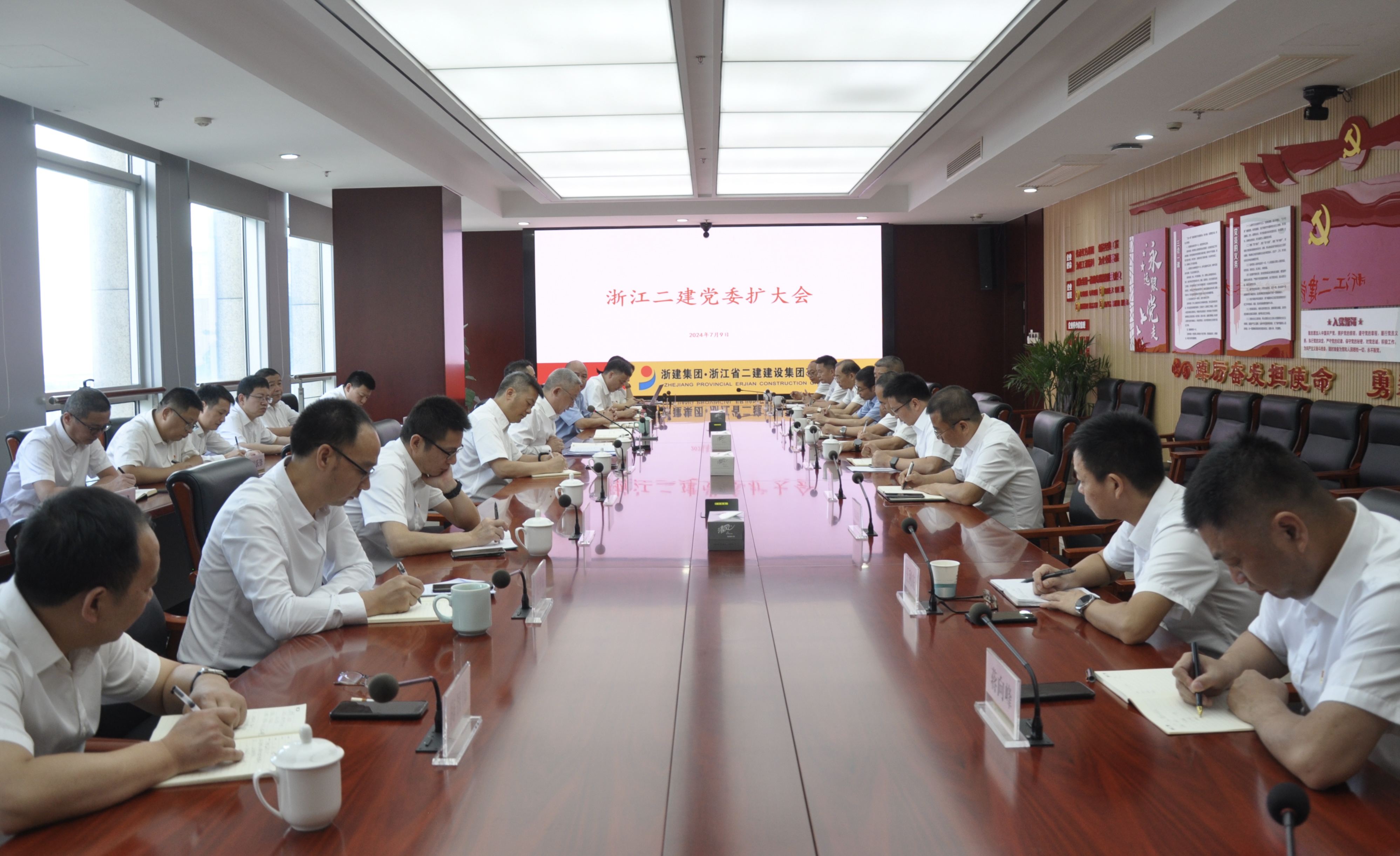 浙江二建領(lǐng)導(dǎo)班子成員,各部門、下屬單位主要負(fù)責(zé)人參加會議。外區(qū)單位負(fù)責(zé)人以視頻方式參加會議。