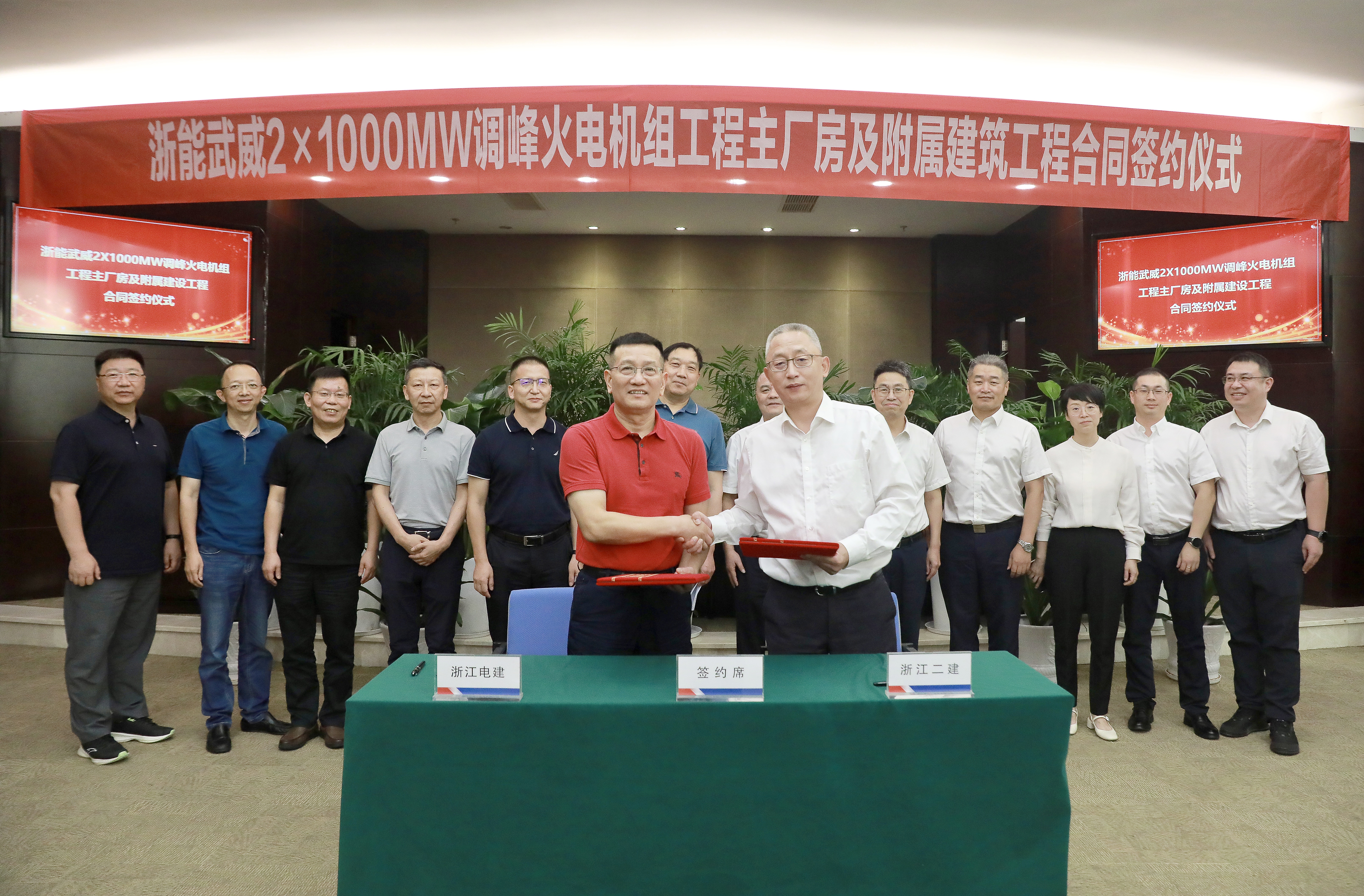 9月3日,浙江省二建建設(shè)集團(tuán)有限公司與浙江省電力建設(shè)有限公司合作項(xiàng)目——浙能武威2x1000MW調(diào)峰火電機(jī)組工程主廠房及附屬建筑工程合同簽約儀式在浙江電建總部大樓舉行。浙江二建黨委書記、董事長(zhǎng)卓建明,浙江電建黨委書記、董事長(zhǎng)李必正代表雙方簽訂合同。