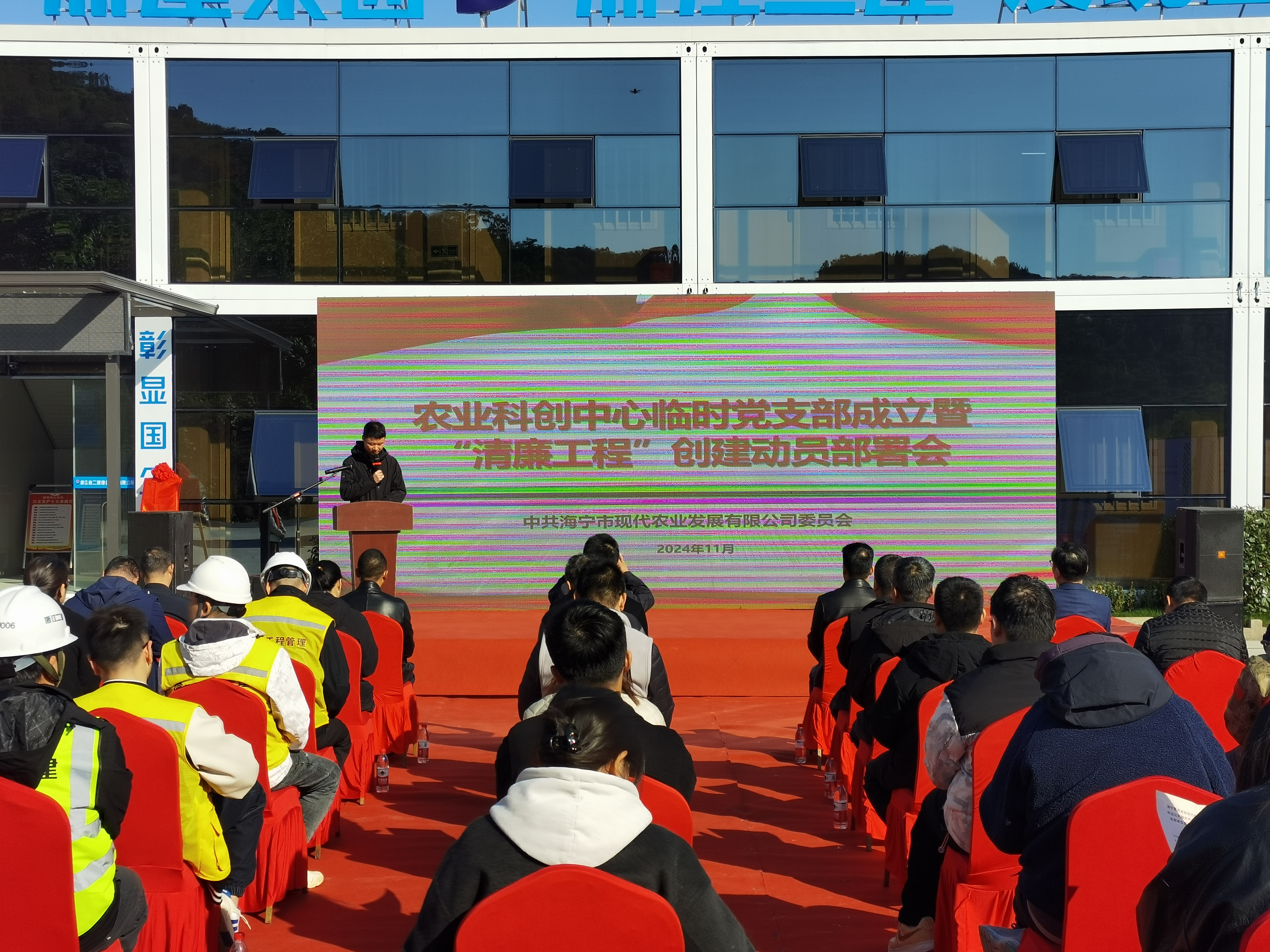 11月27日,浙江二建海寧黃灣省級(jí)現(xiàn)代農(nóng)業(yè)示范園項(xiàng)目——現(xiàn)代農(nóng)業(yè)公共服務(wù)平臺(tái)(農(nóng)業(yè)科創(chuàng)中心)項(xiàng)目部,舉行臨時(shí)黨支部成立暨“清廉工程”創(chuàng)建動(dòng)員部署會(huì)。集團(tuán)黨委副書記、工會(huì)主席陳旭輝參加。