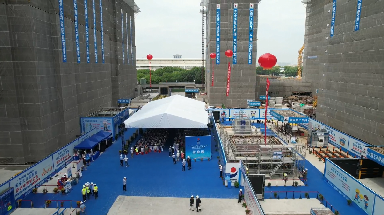 為進(jìn)一步提高建設(shè)工程領(lǐng)域安全生產(chǎn)和文明施工意識(shí),6月4日,鎮(zhèn)海區(qū)2025年度安全文明施工標(biāo)準(zhǔn)化現(xiàn)場(chǎng)觀摩會(huì)暨“查找身邊安全隱患”游園活動(dòng),在浙江二建蛟川北區(qū)念初地塊安置房項(xiàng)目舉行。寧波市住建局黨組成員、總工程師潘伯林出席并宣布儀式啟動(dòng),鎮(zhèn)海區(qū)委常委、副區(qū)長(zhǎng)林輝宇作總結(jié)講話,鎮(zhèn)海區(qū)建設(shè)交通局、區(qū)應(yīng)急管理局、消防救援大隊(duì)、各鎮(zhèn)(街道)、石化區(qū)建設(shè)管理局等相關(guān)領(lǐng)導(dǎo)和鎮(zhèn)海區(qū)在建項(xiàng)目的建設(shè)、施工、監(jiān)理單位分管負(fù)責(zé)人共計(jì)200余人參加。浙江二建總經(jīng)理、黨委副書記王賢權(quán),副總經(jīng)理婁忠輝等參加儀式。