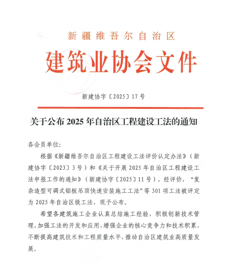 近日,新疆維吾爾自治區(qū)建筑業(yè)協(xié)會公布2025年省級工法名單。浙江省二建建設集團編寫的“超疏水改性泡沫混凝土屋面保溫防水一體化施工工法”“基于BIM技術的廠房建筑工程結構混凝土模板支撐系統(tǒng)施工工法”獲評省級工法。