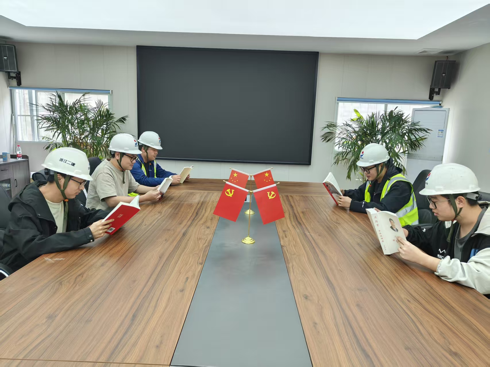 在項(xiàng)目臨窗而設(shè)的讀書角,青年職工們身著工裝、頭戴安全帽,圍坐一桌,翻閱著手中的書籍。窗外塔吊林立、機(jī)器轟鳴,窗內(nèi)書香氤氳、氣氛靜謐,施工一線與理論學(xué)習(xí)在這一刻實(shí)現(xiàn)了有機(jī)融合。青年們邊讀邊記,不時交換心得體會,現(xiàn)場學(xué)習(xí)氛圍濃厚而熱烈。