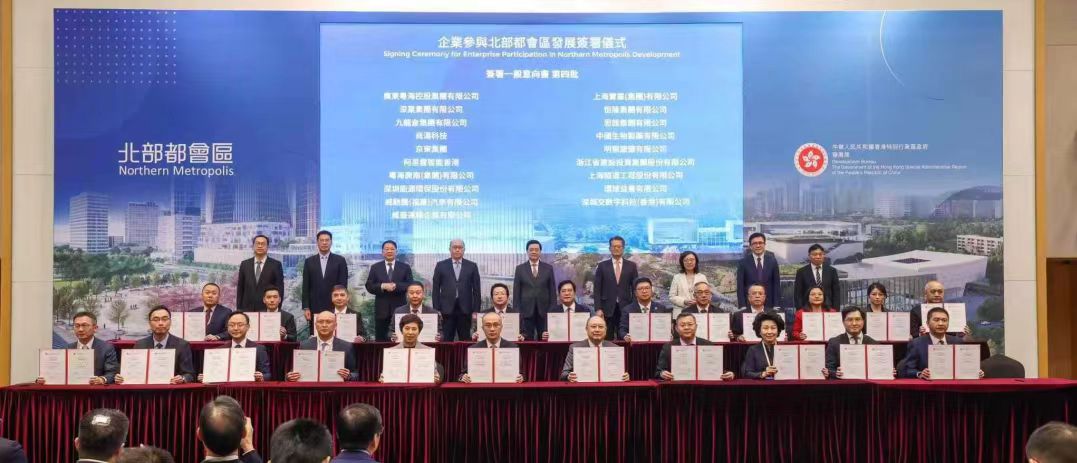 活動(dòng)期間,在李家超和鄭雁雄等人的見(jiàn)證下,85家國(guó)企代表、本地企業(yè)代表簽署了“支持及參與北部都會(huì)區(qū)發(fā)展一般意向書(shū)”。浙建集團(tuán)與所屬華營(yíng)控股同香港特區(qū)政府簽署“一般意向書(shū)”,華營(yíng)控股還就錦上路第6號(hào)地盤公營(yíng)房屋發(fā)展項(xiàng)目與交通銀行(香港)有限公司簽署項(xiàng)目參與書(shū)。