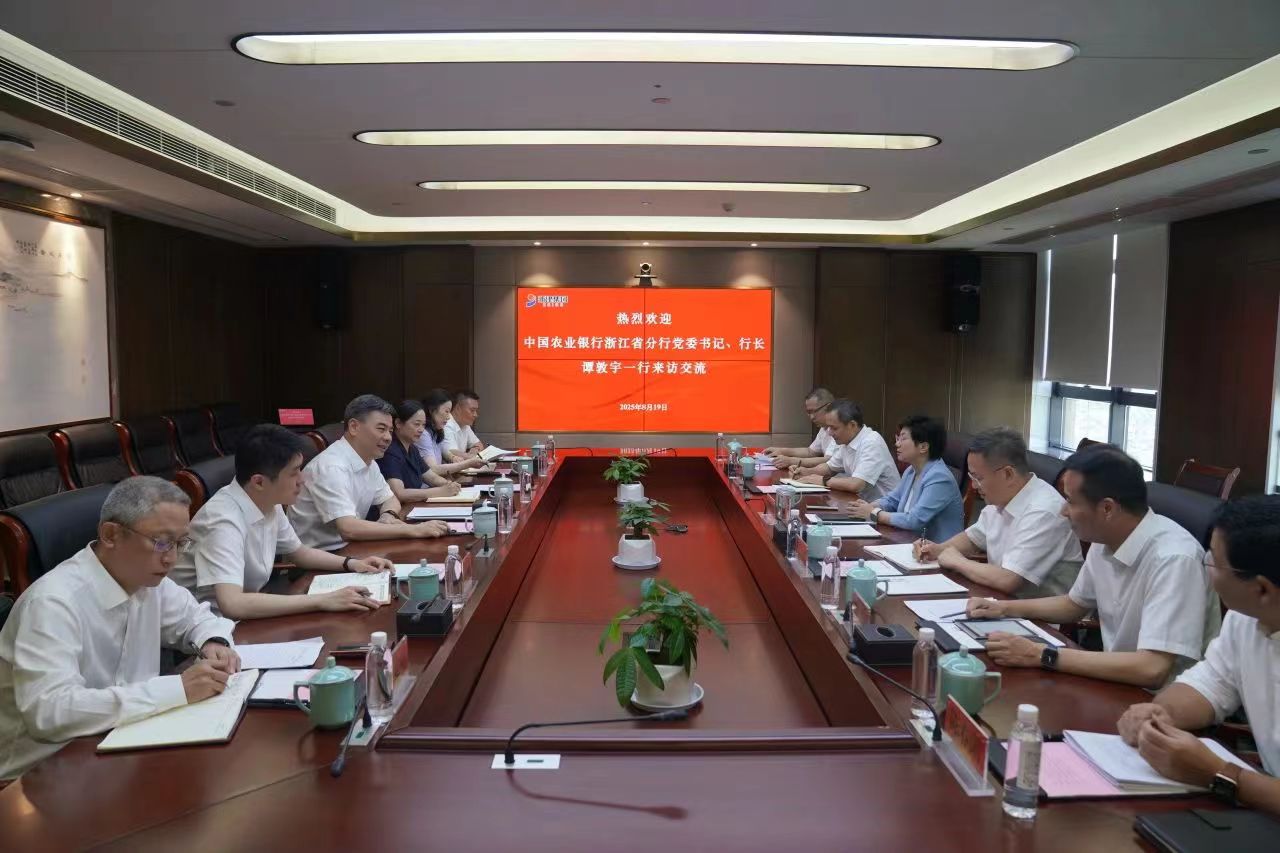 8月19日,中國(guó)農(nóng)業(yè)銀行浙江省分行黨委書(shū)記、行長(zhǎng)譚敦宇一行到浙建集團(tuán)走訪交流,浙建集團(tuán)黨委書(shū)記、董事長(zhǎng)陶關(guān)鋒熱情接待。浙建集團(tuán)總經(jīng)濟(jì)師陳海燕參加交流。