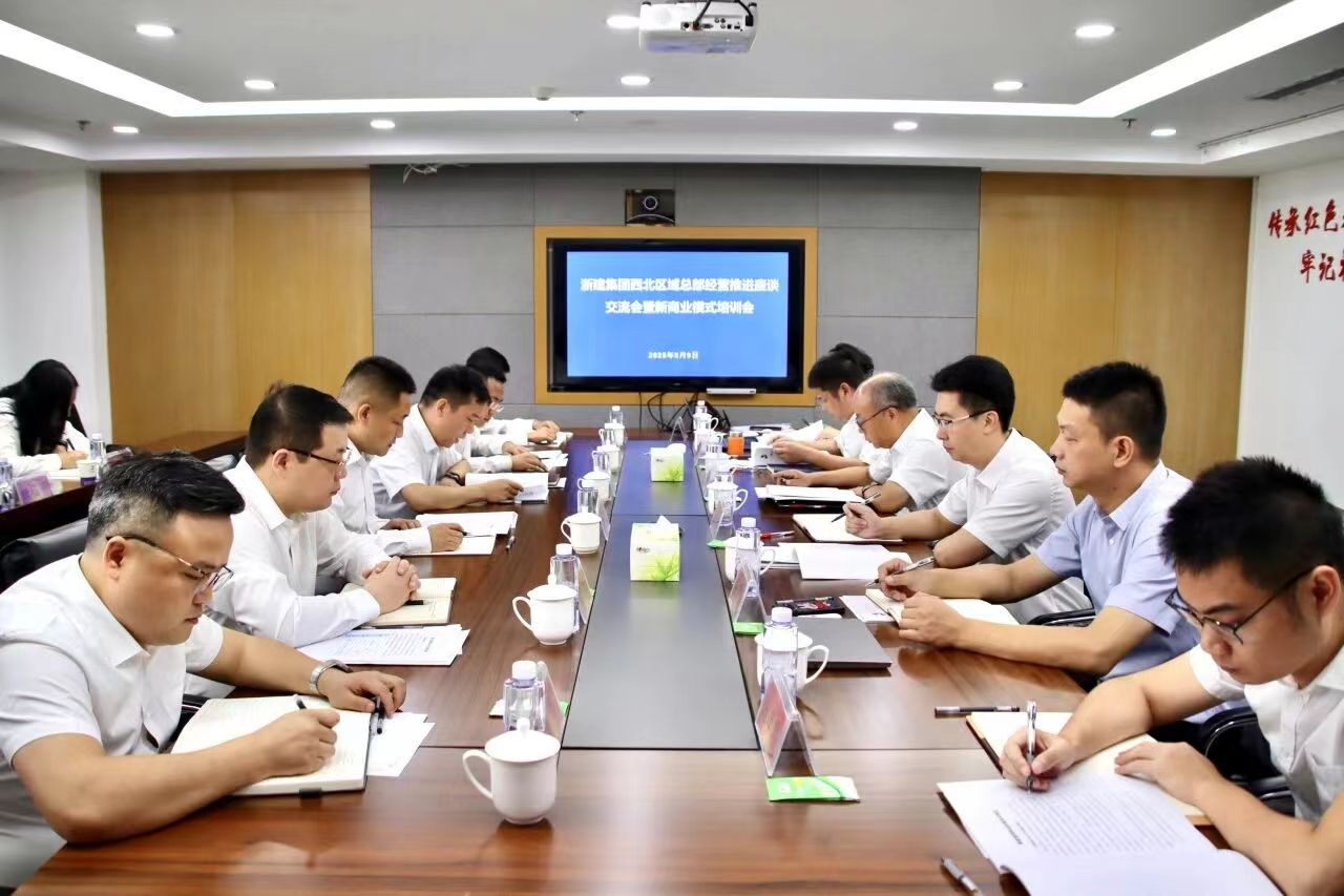 在西北區(qū)域總部經(jīng)營推進(jìn)座談交流會暨新商業(yè)模式培訓(xùn)會上,葉錦鋒聽取了浙建集團(tuán)西北區(qū)域總部和區(qū)域其他分支機(jī)構(gòu)關(guān)于市場開拓情況以及下階段經(jīng)營工作思路的匯報,肯定浙建集團(tuán)西北區(qū)域近二十年來的發(fā)展成果。他勉勵大家要緊盯西北區(qū)域多重戰(zhàn)略機(jī)遇疊加的黃金發(fā)展期,聚焦城市更新、生態(tài)修復(fù)、新能源等領(lǐng)域,解放經(jīng)營思路,進(jìn)一步深化“浙建+”“+浙建”新商業(yè)模式,勇拓市場。持續(xù)深化“二次經(jīng)營”,以現(xiàn)場促市場,積極打造浙建品牌口碑。深入推動區(qū)域內(nèi)資源互補(bǔ)、相融并進(jìn),共同發(fā)展,奮力開創(chuàng)省外經(jīng)營工作新局面,為打造“新浙建”作出更大貢獻(xiàn)。會上,浙建集團(tuán)經(jīng)營管理部開展了新商業(yè)模式培訓(xùn),浙江建工、浙江交建、浙江建機(jī)有關(guān)負(fù)責(zé)人參加座談交流。